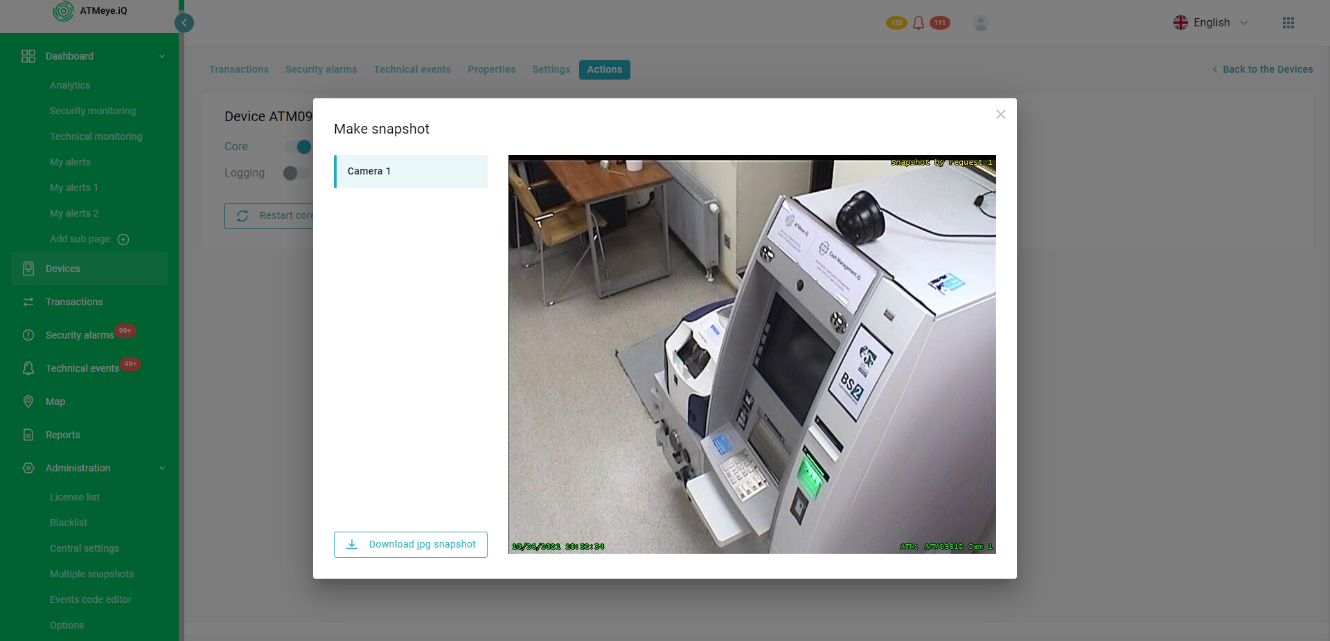 ATMeye.iQᴺᴳ позволяет быстро просмотреть, что происходит на экране устройства, и принять меры. Например, дистанционно перезагрузить систему.